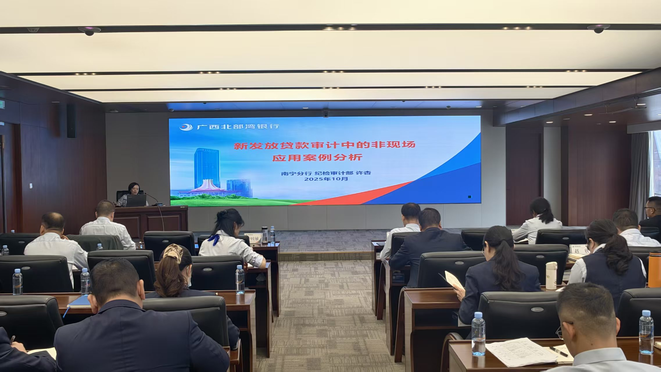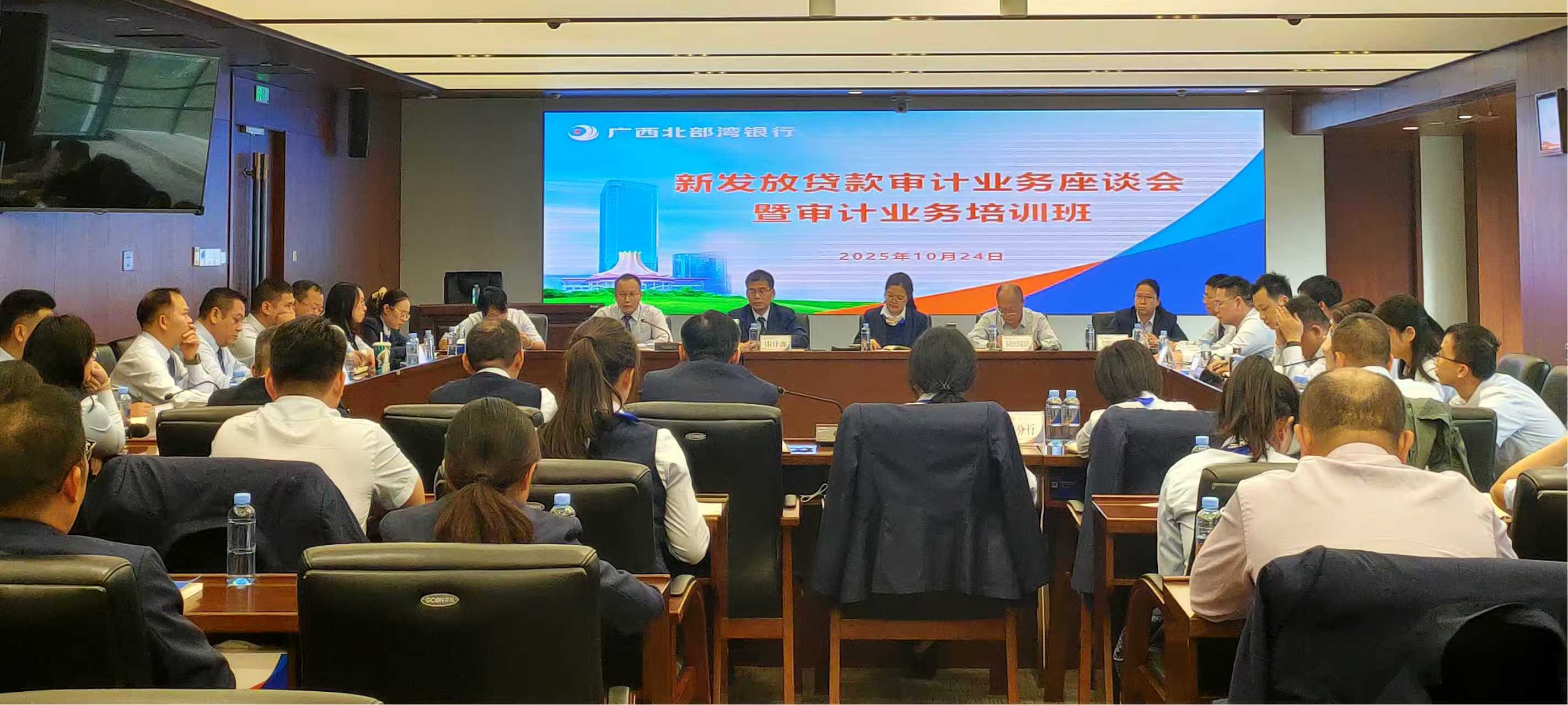 为深入贯彻落实金融监管政策要求和行党委指示精神,切实推动新发放贷款审计向纵深化、成效化实施,提升新发放贷款审计工作质效,2025年10月24日,广西北部湾银行(简称北行)举办新发放贷款业务座谈会暨审计业务培训班,通过“典型问题及案例解析+经验交流+座谈研讨”的形式,探索破解新发放贷款审计中的重点难点问题。全行审计条线人员约X人参训。