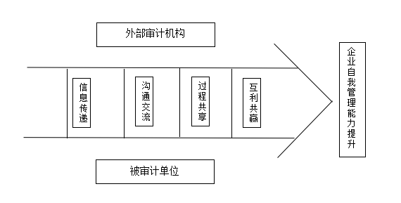 在持续推进的过程中,定期对过往管理行为进行复盘反省,对照往年各类审计、检查重点和发现的问题,组织各部门回头排查,交叉检查,边推边改,控偏纠错。一般每月组织一次全面核查,集中研判工作合规和落实情况。对一些无法准确把握的问题,还及时邀请上级审计部门指导。这种方式既保证了风险的可控性,还保证了工作的连续性,不因某个岗位临时空缺而出现“断档”的现象。通过日常内部自查自纠方式,养成主动寻找风险问题的习惯,提升解决问题的能力。审计进场后,被审计单位也非坐等待查,而是全面参与配合、主动沟通。一方面,按照审计组的要求,准备好审计所需的业务资料,分类提交给审计组。另一方面,从各条线安排工作人员一对一协商沟通,必要时,东院项目还参与审计组组织的业务研讨,就一些比较重大或者复杂的事项进行磋商。审计组在与交投城·东院项目反复沟通协商后,形成问题整改清单,东院项目根据问题清单和整改建议,及时抓好整改。审计离场后,交投城·东院组织召开审计专题分析研讨总结会,向全体项目员工通报审计初步结果,对比项目日常自查情况,查找差距,查漏补缺,在原有问题清单的基础上,形成新的目标整改清单。同时,进一步反思工作缺漏,举一反三,完善相关业务流程,形成工作长效新机制。在审计思维模式下,主要依靠被审计单位自觉履行纠偏功能,协同外部审计单位推进法人治理机制的提升(见图4)。